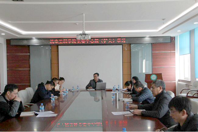 3月28日下午,公司党委理论学习中心组在成栋楼719举行集体学习会。公司经理宋文龙在会上以2018年全国两会精神和中央领导同志讲话精神学习辅导为题,带领大家一起学习了刚刚闭幕的两会有关内容,并就公司新学期学习宣传贯彻十九大精神和两会精神作了具体安排部署,对各个所属党支部提出了具体要求。公司的党委委员、纪委委员、部分教工支部书记和全体辅导员参加了此次学习。