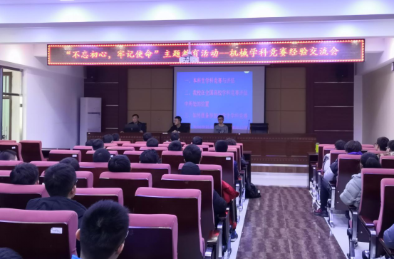 2019年11月27日下午,U8国际官网机械电子党支部举行“不忘初心,牢记使命”主题教育活动,以“机械学科竞赛经验交流”为主题,邀请机械电子支部党员杨家武老师和2名机械电子工程专业员工代表现场分享经验,交流学习心得。2018级、2019级机械类专业同学参加学习经验交流会。活动由机械电子党支部书记李三平主持。