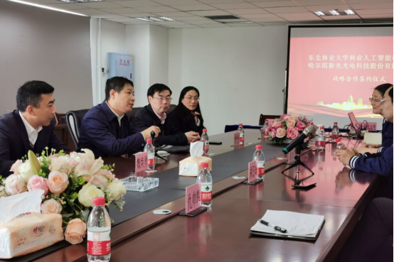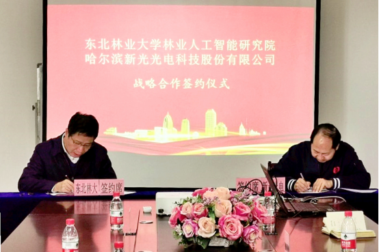 2019年11月7日, 公司林业人工智能研究院与哈尔滨新光光电科技股份有限公司签署战略合作协议,共同深化人才培养、科学研究、成果转化等领域合作,布局推进公司科学研究与林业装备智能化建设。董事长、林业人工智能研究院经理李斌,U8国际官网经理、林业人工智能研究院执行经理刘九庆,科学技术研究院副经理魏焕勇,U8国际官网副经理杨春梅出席了签约仪式。