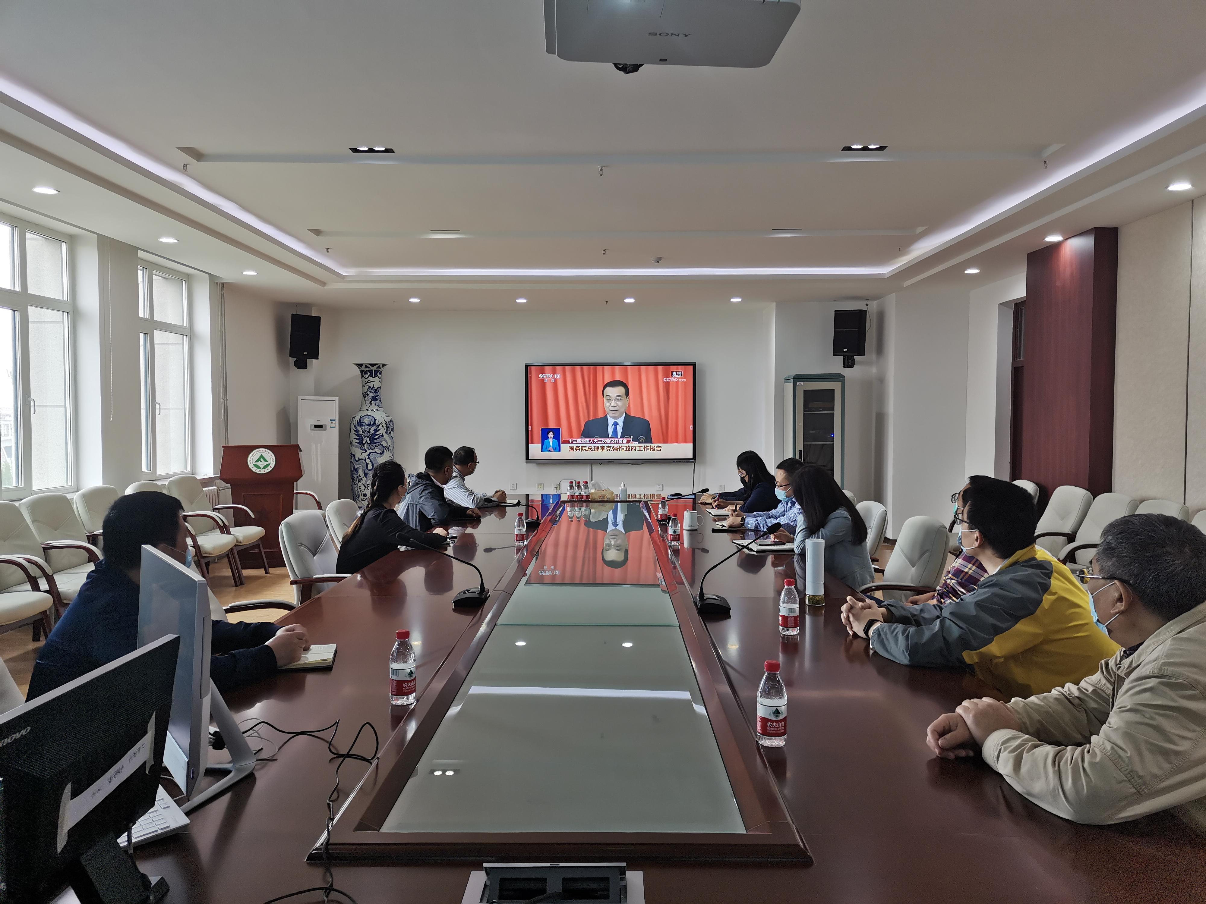 5月22日上午9点,公司班子成员、教师代表在成栋楼713会议室,集中收看十三届全国人大三次会议开幕会,聆听李克强总理作政府工作报告。会前,大家与屏幕内、会场内的代表一同起立,向新冠肺炎疫情牺牲烈士和逝世同胞默哀1分钟。