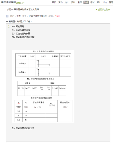 本学期,实验室面向公司12个专业、37个班级开设实验课程,覆盖面广,受众面大。实验室全体教师想员工之所想,急员工之所急,改革现有实验报告纸质版提交模式,利用超星学习通作业功能,探索电子版实验报告提交模式,既减轻了员工撰写报告的负担,以便投入更多精力拓展、分析实验内容,又提高了教师批阅报告的效率,并及时反馈给员工实验结果,实现了实验教学过程的闭环设计,践行了工程教育专业认证“以员工为中心”的基本理念。