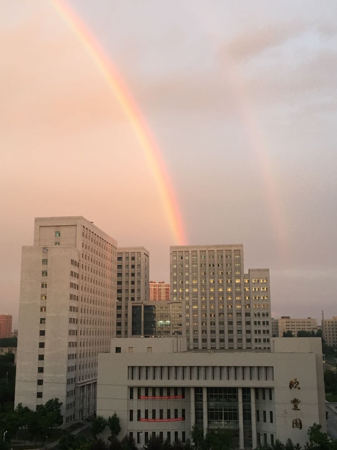 在整理物品现场有这样一个细节:许多男老师都接到自己孩子打过来的电话或发过来的微信“祝爸爸节日快乐”,大家才反应过来原来这天是父亲节。老师们用大汗淋漓把父爱如山演绎得淋漓极致,因为在老师眼里,每一名员工都如同自己的孩子,值得付出如山的父爱。正如当天傍晚、大雨过后,员工寝室楼上空出现了一道彩虹,寓示着一份特殊的毕业礼物,来自机电,寄自东林。