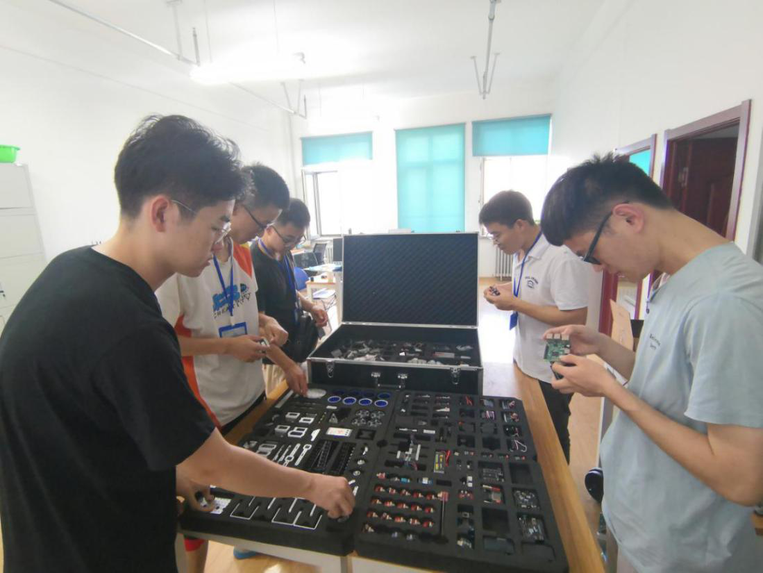 2019年7月15日至2019年7月16日,机械工程实验室在成栋楼620室-机器人技术实验室,开展了为期两天的“探索者机器人创新实验系统”使用操作培训。机械电子工程教研室、机械设计制造及其自动化教研室、机械工程实验室相关教师及公司相关专业本科生、研究生参加了本次培训。培训期间,教学副经理张佳薇和实验中心主任朱海老师到实验室了解了设备安装调试、培训内容、后续实验课程开展等情况。
