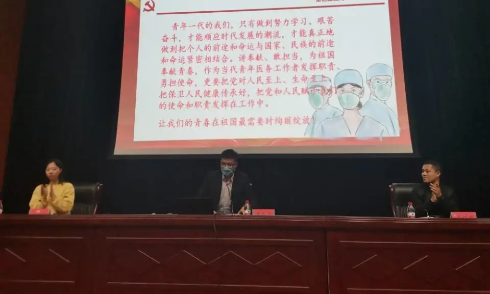 获得“白衣卫士”“党员先锋”“最美逆行者”多项称号的梁志波医生以《让青春在党和人民最需要的地方绽放》为题,从“逆行武汉、青春无悔”,“守国门、保家乡、驰援绥芬河”、“奋进正当时、青春勇担当”三个方面与同学们交流了“众志成城、抗击疫情”的亲身经历和个人感悟,分享了切身体会。梁志波医生结合作为支援武汉,驰援绥芬河医疗方舱医院工作者的工作经验与工作细节,讲述了疫情爆发以来在湖北、绥芬河数十个日夜的坚守与救治,最终实现了患者零死亡、参与诊疗医护人员零感染、出院患者零回头的目标,圆满完成救治任务的难忘经历。他谈到,作为一名80后的青年党员,在这场疫情防控总体战中,深刻体会到习近平总书记强调的“人民至上、生命至上”崇高理念。于他而言,就是全心全意救治患者,做好医生的本职工作,把个人之小我融入祖国之大我、人民之大我中,只有这样才能体现出人生的价值。梁志波医生以自己所在的党支部深入武汉方舱医院、绥芬河方舱医院,主动介绍积极分子入党为例,鼓舞大家积极向党组织靠拢。梁医生号召现场的青年老员工,顺应时代发展的潮流,把个人的前途和命运与国家、民族的前途和命运紧密结合,讲奉献、敢担当,为祖国奉献青春。全场多次响起经久不息的掌声,向白衣天使致敬,向新时代英雄致敬,向集中力量办大事的中国特色社会主义制度优势致敬。