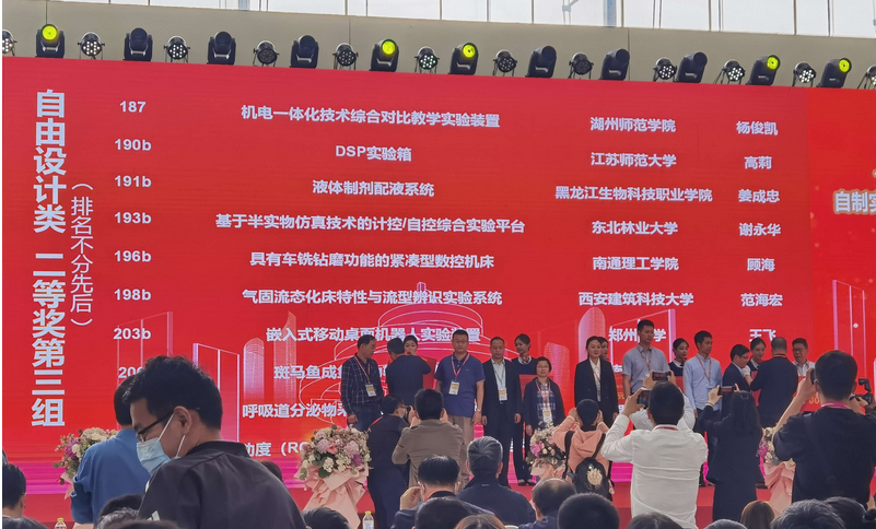 自制实验教学仪器设备创新大赛是全国性比赛,旨在提高教师在人才培养中的教学与研究能力,推动高校实验教学方法、教学手段的改革与创新。本届大赛获得全国各地高校的广泛关注,140余所公司近千件作品参加初赛,350余件优秀作品进入决赛,最终评选出一等奖13项,二等奖40项,三等奖若干。