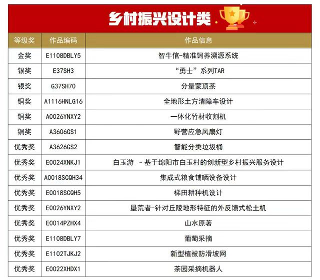 大赛自2022年4月启动以来,吸引了众多工业设计企业、高校以及设计人员的关注和参与,赛事规格高,国际化程度强,共征集到全国以及德国、英国、芬兰、日本、韩国等国家地区的参赛作品7648件。最终,经过海内外12位行业专家“线上+线下”集中评审,评选出11个金奖、20个银奖、29个铜奖。公司取得的优异成绩,不仅彰显出公司人才培养和公司产品的优势,更坚定了加快产教融合、服务乡村振兴,进一步建强办好专业的信心。