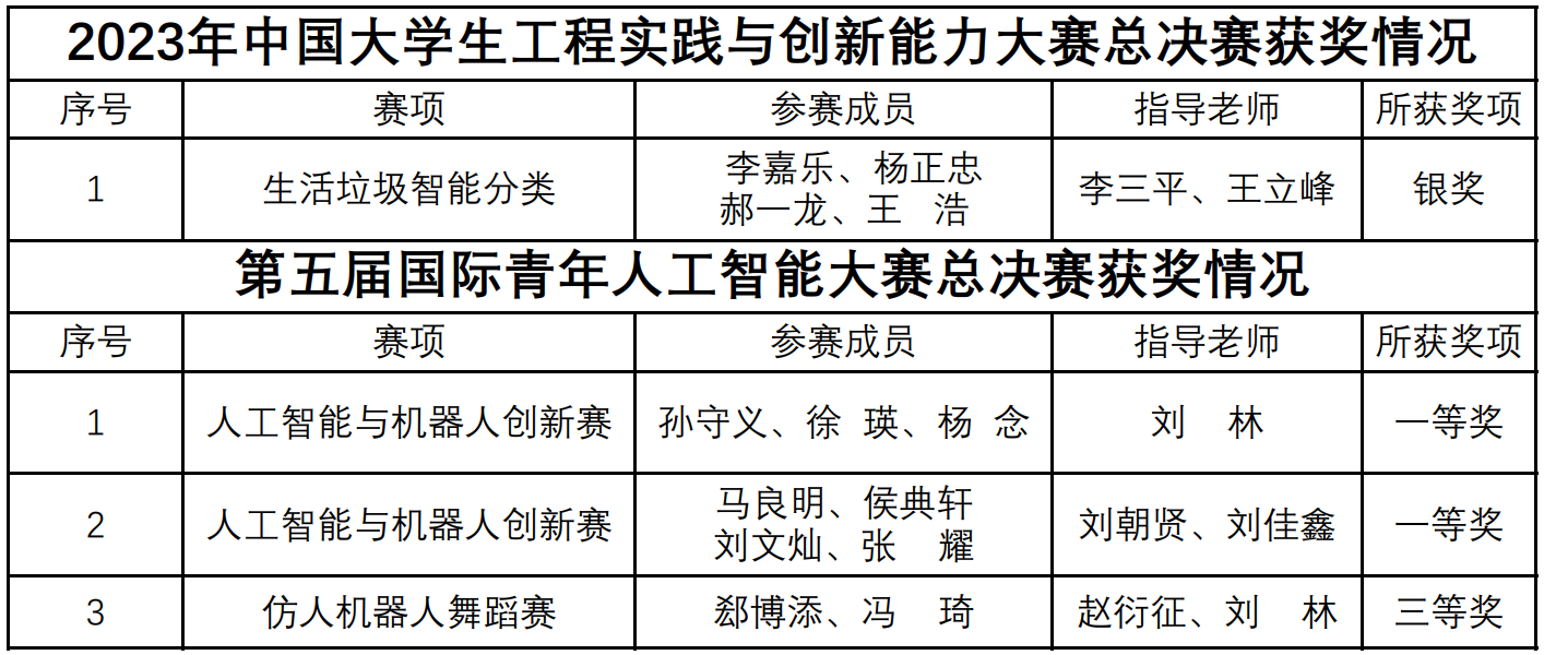 近日,2023年中国老员工工程实践与创新能力大赛总决赛、第五届国际青年人工智能大赛总决赛相继闭幕。公司学子荣获中国老员工工程实践与创新能力大赛银奖,在“智能+”赛道中首次入围全国总决赛。在国际青年人工智能大赛,公司学子首次参赛并斩获一等奖2项、三等奖1项。
