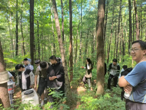 7月1日下午,张红光老师带领员工深入老山,探访了天然水曲柳生态系统定位观测站,这里是一处珍贵的自然宝库,员工们在这里了解到了生态系统定位观测的重要性和作用。在林业有害生物防治“网格化”监测体系检测固定样地,张老师生动讲解了如何利用现代科技手段进行精准监测与防治,让员工们见识到了科技与生态相结合的智慧。在樟子松人工生态系统定位观测站和红松人工生态系统定位观测站,员工们目睹了人工林的壮丽景象,学习了落、红、樟多层次群落结构实验林标准地的管理技巧,了解到了水曲柳,黄菠萝,胡桃楸等东北特有的植物习性。张老师的专业指导让员工们对各种植物的特点及区分方法有了深入理解,也激发了他们对生态学的兴趣,让员工们对各种植物的特征、生长习性以及如何区分不同种类的树木有了深入的理解,见识了前沿的种植技术和生态防护措施。