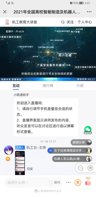 2021年11月17日-2021年11月19日,机械工业出版社举办了以“智能制造及机器人课程”为主题的线上教学课程,针对目前机械学科相关领域中蓬勃发展的智能制造技术产业以及机器人相关研究方向进行了广泛的探讨和详细阐述。