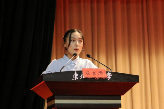 新生代表强晨曦代表新生发言,他回顾了高中三年的挑灯夜读的辛苦,又表达了对即将到来的多彩老员工活的期待,展现了作为新机电人的意志与气魄。