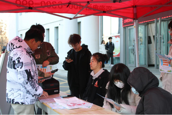 搭建帐篷、摆放桌椅、整理工具……每一位志愿者亲力亲为,为活动开展做足前期准备。志愿者们不惧寒冷,热情向同学们宣传活动,同学们参加活动的热情大大提高。