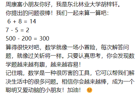 小朋友们分享着自己的童真视角,在校老员工们以大朋友的视角,来回应小孩子的好奇心,解答人生的疑问。这一分钟,可以给予他们温暖的陪伴,让梦想的种子在心中发芽。近70个问题收到了数百份温馨的回复,成为冬日里最耀眼的一抹暖阳。